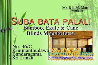 Bata Pelali Suppliers Bandaragama price in Sri Lanka. Best deals from වැඩබිම.com for Hardware items in Sri Lanka. Bamboo Blinds is the premier destination Company for the best in stylish Local and imported Bambo Blinds Items. , etc... Find best deals from වැඩබිම